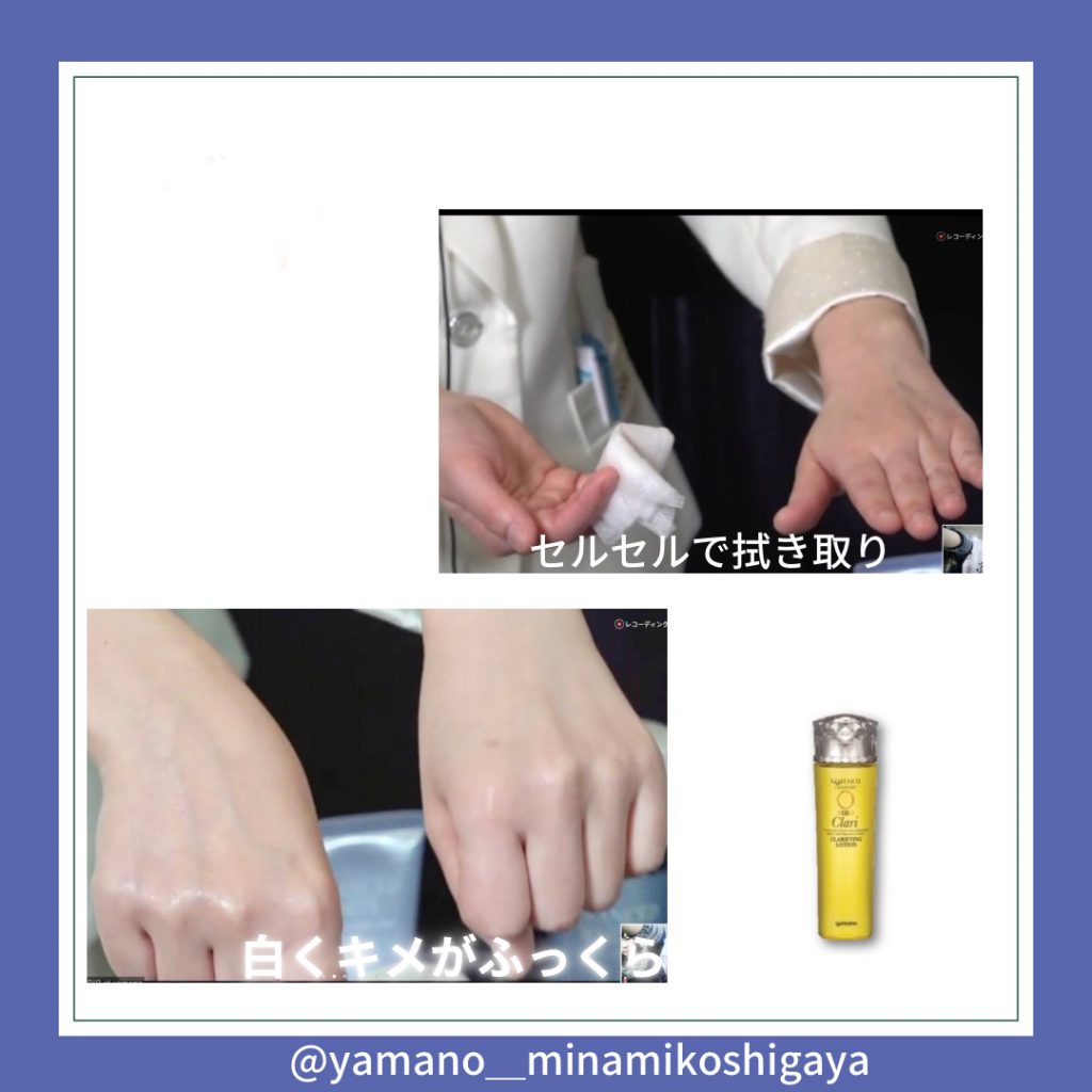 拭き取りLを使用した手は余分な角質除去され白くなりキメが膨らんでいます。